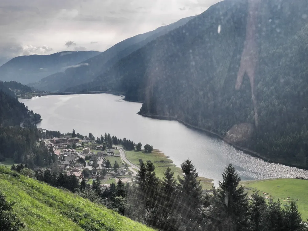Blick auf den Zoggler Stausee aus der Seilbahn.
